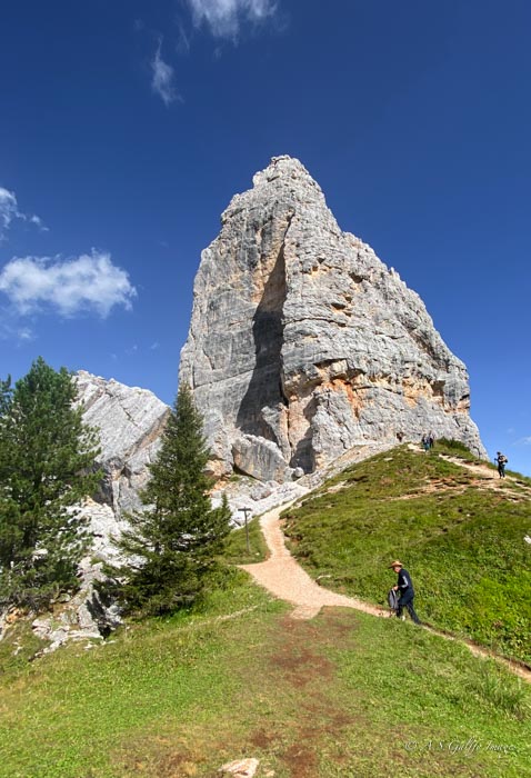 From the parking lot some people choose to hike up on foot to Cinque Torri. The hike starts at the bottom station of the cable car, but it’s a steep climb (from about 1.900m to 2.250m) and it’s not worth doing in my opinion. Unless of course you are in it for some strenuous physical activity. For the most part, this path follows the ski slopes and there isn’t even much vegetation on it.