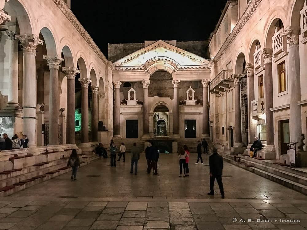 Diocletian’s Palace looks fascinating. Full of history, but alive with modern day life. I love all the stone work and would love to be dining under those canopies in front of the facade.