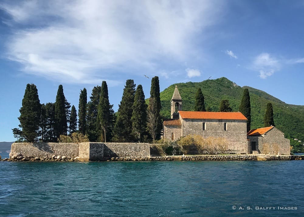 Right across from Perast there are two little islands that look pretty much alike, but couldn’t be more different. The smaller one – the Island of St. George – is actually a natural island.