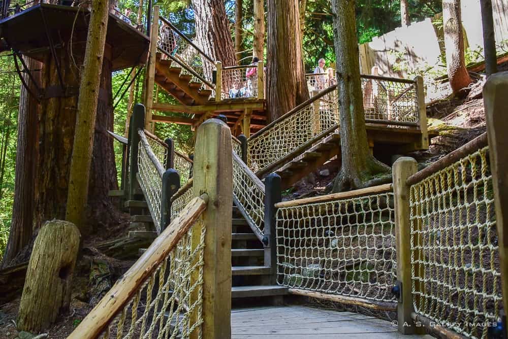 One of the biggest tourist attractions in Vancouver is the Capilano State Park. Located just a little outside the city, the Park features three attractions: the Capilano Suspension Bridge, the Cliffwalk and the Treetop Adventure.
