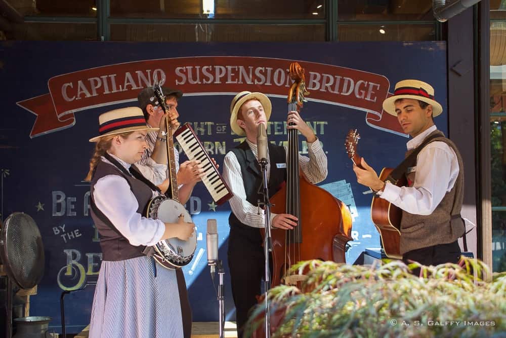 There is plenty to see and do at the park, so allow yourself a couple of hours to wander through. Capilano State Park runs a free shuttle from downtown Vancouver hotels or from Canada Place. When you enter the Park, singers dressed in period costumes will transport you back to the days of the pioneers.
